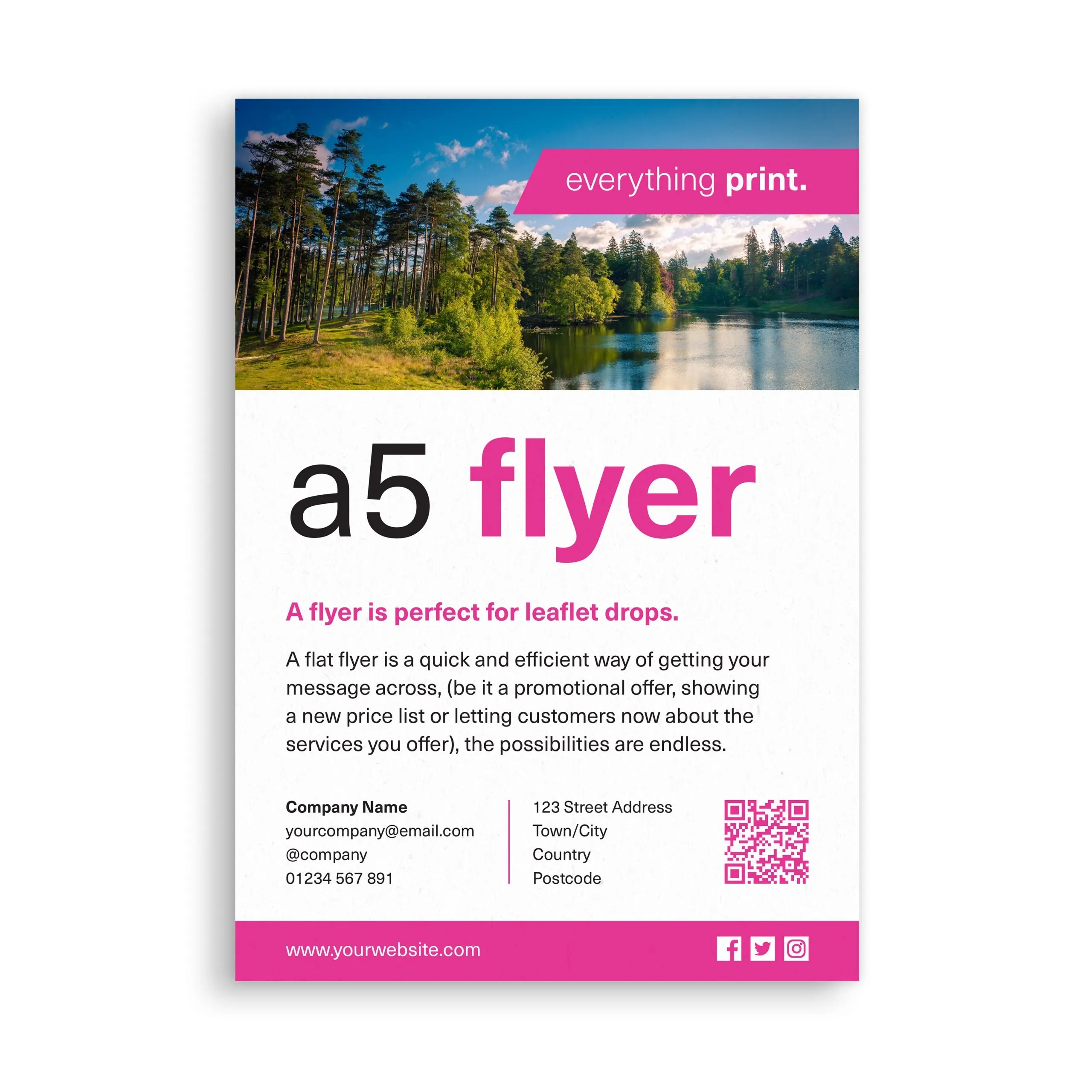 Flyers are perfect for leaflet drops. A flat flyer is a quick and efficient way of getting your message across, (be it a promotional offer, showing a new price list or letting customers know about the services you offer), the possibilities are endless. Our range of flat flyers are the perfect solution, the range of different options allow you to put as little or as much content/information as you like, thus allowing you to get the desired message to your customers.
