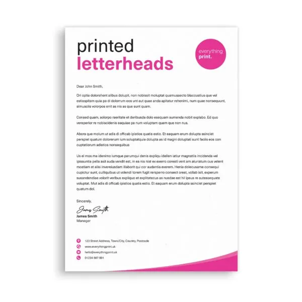In the UK the standard size for letterheads is A4 (210mm x 297mm). We also design and print less common sizes to meet individual requirements, our bespoke letterheads can include perforated tear-off sections which is useful as part of a direct mail campaign.